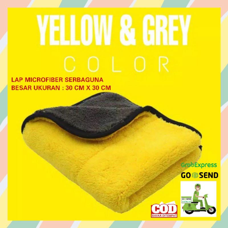 Warna Kuning-AbuUkuran 30 x 30 cmHarga Untuk 1 Pcs.Fungsi dan Kegunaan :- Bahan Microfiber.- Sangat Tebal dan berpori-pori sangat rapat, KWALITAS SANGAT BAGUS.- Sangat mudah menyerap air dan membersihkan kotoran yang menempel tanpa menggores permukaan.- Sangat cocok untuk membersihkan permukaan mobil, dashboard mobil dan lainnya, alias serbaguna.- Ukuran 30cm x 30cm.- Ketebalan kurang lebih 3mm.- Warna : Kuning kombinasi