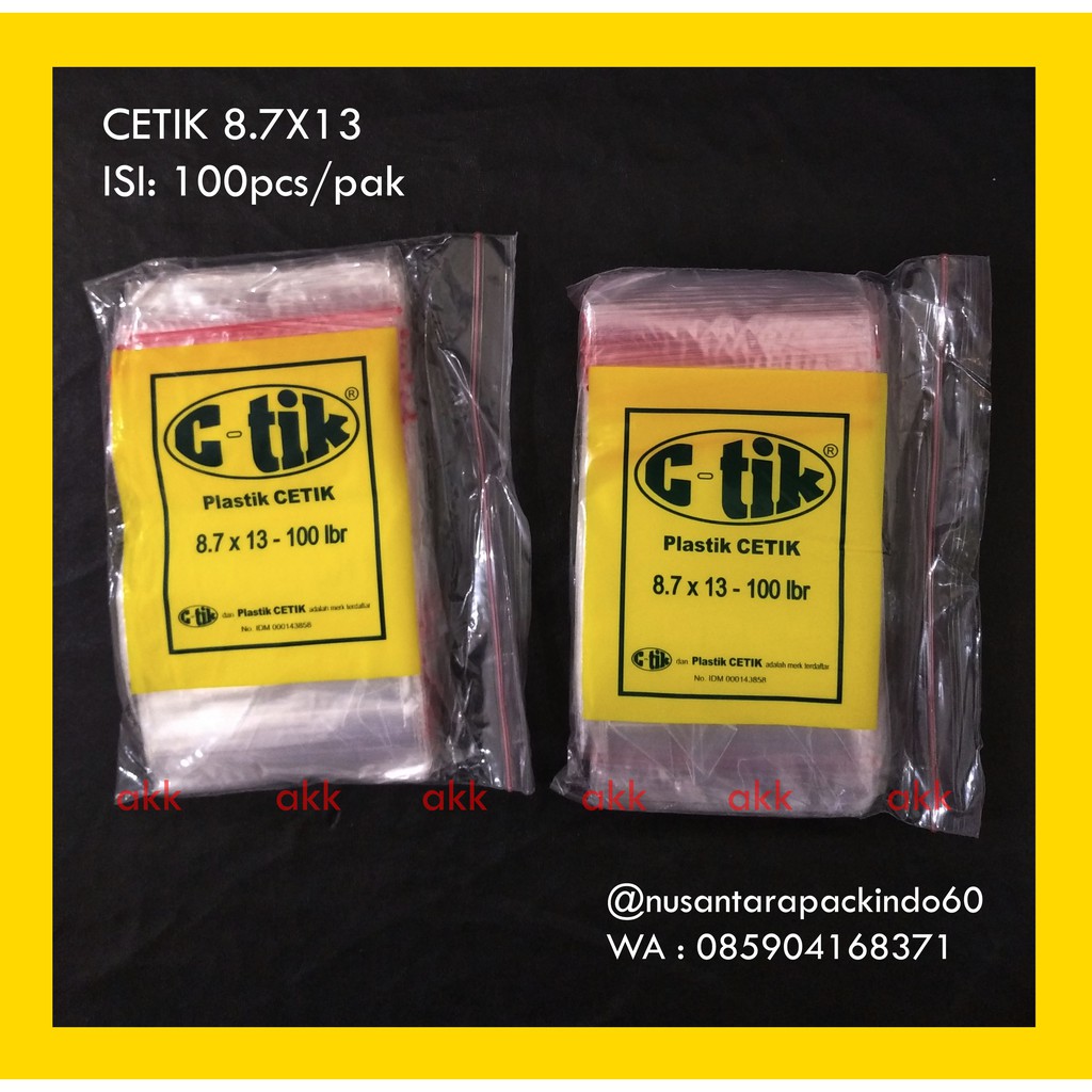 PLASTIK KLIP MERK CETIK Harga tertera adalah harga per pack (100 PCS)LEBAR 8,7 CMTINGGI 13 CMDILENGKAPI DENGAN KLIP PADA BAGIAN ATAS1 PACK ISI 100 PCS1 SLOP ISI 1000 PCSada berbagai macam ukuran, silahkan cek produk kami lainnya #PLASTIKKLIP #PLASTIKPEMBUNGKUS #KLIPCETIK #pl
