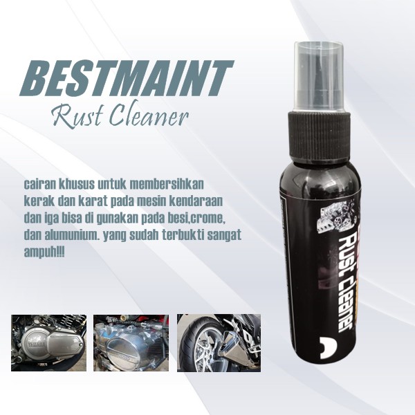 Pembersih Karat Mesin Motor Bestmaint Rust cleanerGARANSI 100%WARNINGnb: untuk pengiriman ke luar pulau Jawa di mohon pake kurir JNE.J&T tidak bisa untuk pengiriman luar pulau Jawa#KEGUNAAN-Bestmaint Rust cleaner Dapat membersihkan karat pada besi,crome,alumunium-Bestmaint Rust cleaner Dapat memebersihkan kerak membandel pada mesin kendaraan-Bestmaint Rust cleaner membersihkan sisa sisa oli membandel pada motor/mobilWARNINGJANGAN SAMPAI KENA BAHAN PLASTIK/ CAT MOTOR/MOBIL#CARA PAKAI Bestmaint Rust cleaner-Semprotkan cairan pada mesin yang berkerak-Gunakan kuas,sikat,atau yang lain untuk meratakan cairan ke mesin.Tunggu 5/10 menit biar cairan bereaksi,lalu bilas bersih dengan air-Untuk karat gunakan sikat alumunium atau sikat kawat yang halus agar cairan lebih reaktif-Gunakan dalam kondisi mesiin dingin ( tidak panas)-Hindari pengunaan di bawah terik matahari-Jika terkena kulit atau bagian tubuh yang lain segera cuci dengan sabun dan air yang bersihBestmaint Rust cleaner solusi buat kerak karat membandel dalam satu paketISI 100 mlberat:100 grSelamat berbelanja terimakasih.pembeli puas kami pun