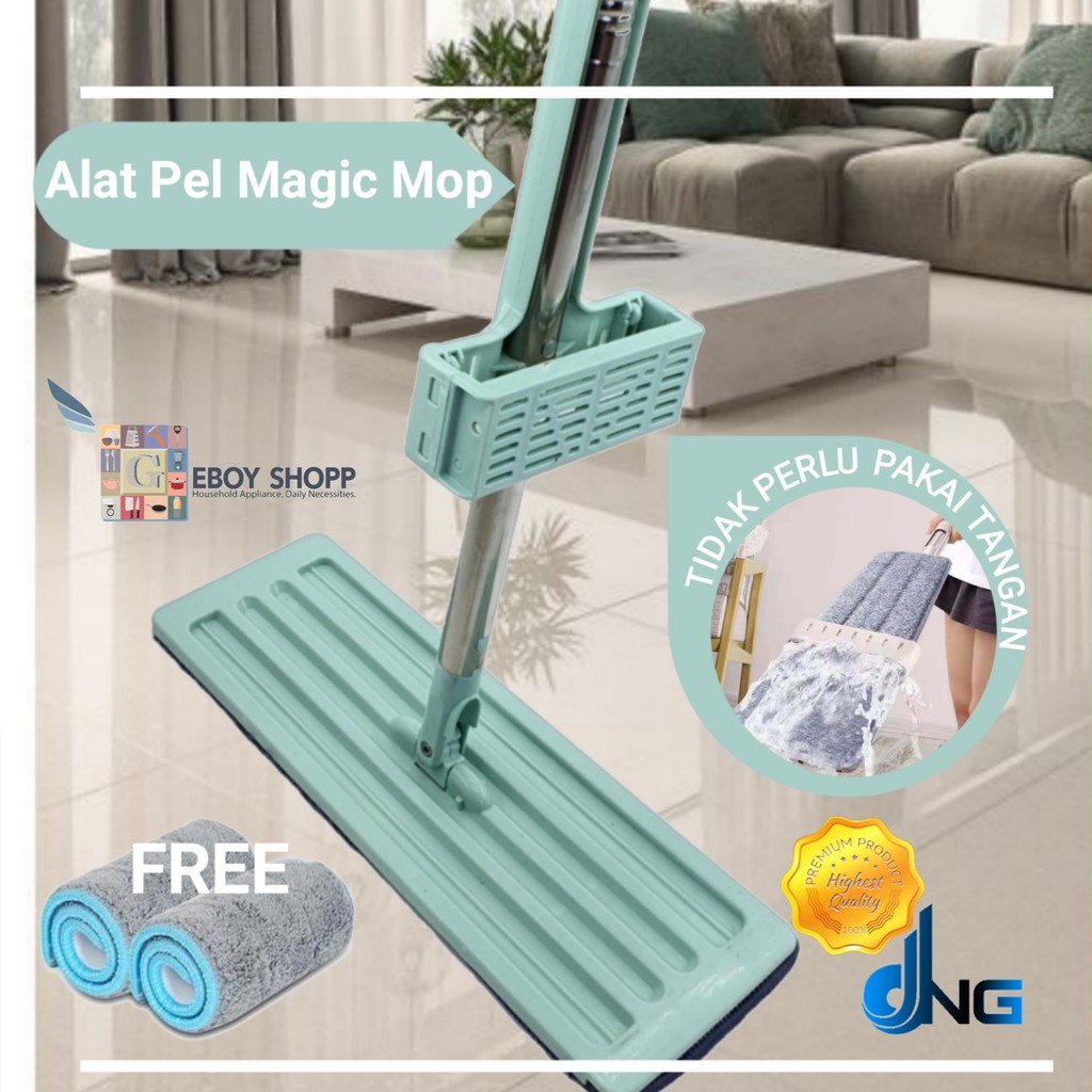 Alat Pel Lantai Magic Flat Mop DNG adalah alat pel dengan teknologi terbaru ini akan membantu anda lebih mudah dalam membersihkan rumah, kantor, maupun toko anda. Alat pel ini bisa meremas sendiri, jadi bisa sangat meringankan tugas anda sehari-hari dan tidak mudah merusak tangan anda. Selain itu Anda dapat meletakkannya berdiri, dan tanpa mencuci tangan. Ini bisa membersihkan / meremas sendiri, desain bar yang memanjang dan mudah dibersihkan. Alat pel ini membantu kita dengan mudah untuk membersihkan langit-langit, dinding dan perabotan lainnya di sela sela dan belokan. Produk ini cocok untuk digunakan dengan lantai kayu, lantai keramik, marmerSpesifikasi :Tongkat POLE : 125CMPelat bawahnya : 38CM x 12CMBahan Mop :Bahan Kain Mop : MicroFiberKelengkapan :1 pcs Alat Pel Flat Mop2 pcs Kain Pel*Sudah termasuk Kotak Sehingga Cocok untuk Hadiah Juga loh NO CLAIM NO RETUR !! Kami hanya menerima retur untuk barang yang CACAT dan SALAH BARANG. HARAP KIRIM bukti foto format slip depan yang ada di paket beserta foto barang yang diterima agar kita bisa cek kesalahannya. Barang sudah kami cek sebelum dikirim. Kerusakan yang terjadi di dalam pengiriman bukan tanggung jawab kami. Untuk Keamanan pengiriman di sarankan untuk di tambahkan ASURANSI setiap transaksi. https://shopee.co.id/Asuransi-Pengiriman!!-WAJIB-ATC-KALAU-MAU-AMAN-!!-i.14332624.7002598253"NO COMPLAIN APABILA TIDAK ATC ASURANSI PENGIRIMAN"ORDER = SETUJUNOTE : * Apabila terdapat pilihan warna dan karakter pada barang yang di pesan tolong di berikan ALTERNATIF (1 s/d 2 warna) agar mempercepat pengiriman atau bisa konfirmasi ke kami terlebih dahulu untuk warna atau karakter yang tersedia.* Jika tidak memberikan alternatif warna atau karakter pada keterangan akan kami kirimkan secara random kecuali pada kolom KETERANGAN mencantumkan "KOSONG=CANCEL" maka barang tidak akan kami kirimkan, NO KOMPLAIN NO RETUR. * Tolong selalu mencantumkan ALAMAT LENGKAP dan NO HP yang AKTIF (TERUTAMA UNTUK PENGIRIMAN GOSEND)* Resi akan di berikan H+1 setelah PENGIRIMAN, JIKA ada keterlambatan penginputan resi maka dari pihak EKSPEDISI yang telat memberikan resi kepada kami.ORDER = SETUJUHAPPY SHOPPI
